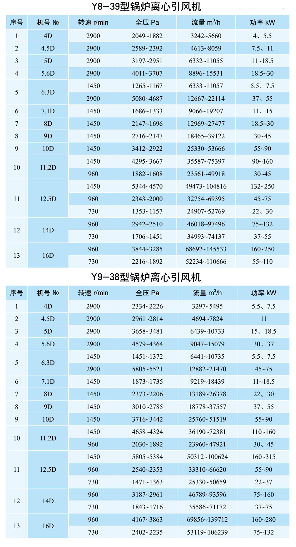 1、本風(fēng)機(jī)制成單吸入,機(jī)號有№4、№5、№5.6、№6.3、№7.1、№8、№9、№10、№11.2、№12.5、№14、№16十三個機(jī)號。